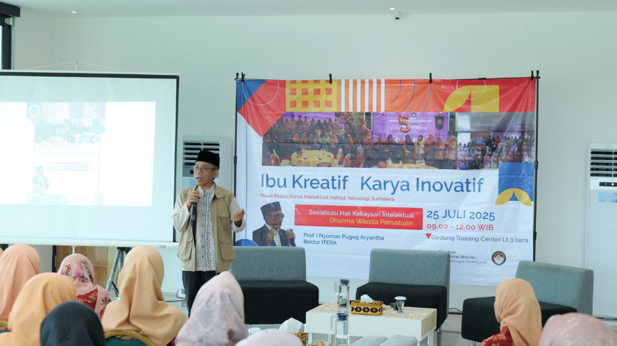LPMPP NEWS – Dharma Wanita Persatuan (DWP) dan Pusat Kelola Karya Intelektual (PKKI) Institut Teknologi Sumatera (Itera) menggelar kegiatan sosialisasi Hak Kekayaan Intelektual (HKI) bertajuk “Ibu Kreatif, Karya Inovatif”, di ruang rapat Gedung Training Center Itera, Jumat, 25 Juli 2025.